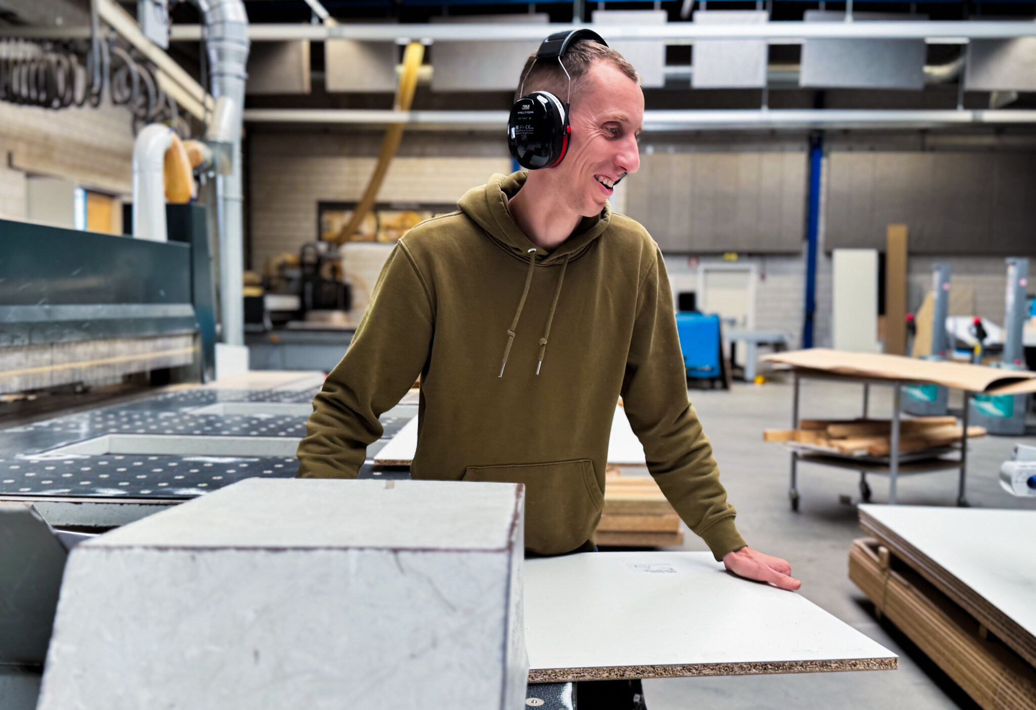 Als machinale medewerker bij INTOS bereid je het materiaal perfect voor, zodat onze meubelmakers meteen goed van start gaan en ons maatwerk meubilair tot leven kunnen brengen. Je bedient en stelt machines in zoals CNC-opdeelzagen, boor-freesmachines, kantenlijmers en andere houtbewerkingsmachines. Samen met je collega’s in de machinale vorm jij de basis van al onze maatwerkprojecten.